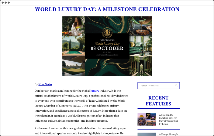 “ World Luxury Day is significant because it allows us to reflect on what true luxury means today. ”