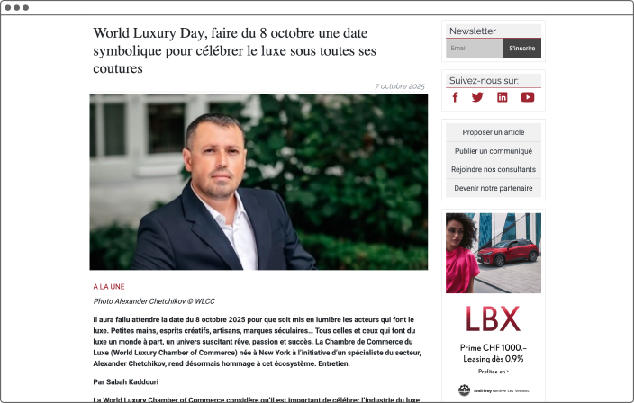 World Luxury Day was founded by the WLCC as an initiative to launch the first-ever professional holiday dedicated to the luxury industry, transforming into a global celebration for everyone passionate about luxury.